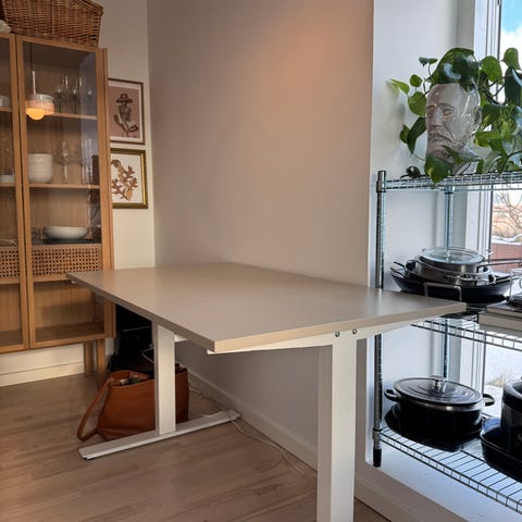 Hvidt skrivebord med hæve sænke funktion