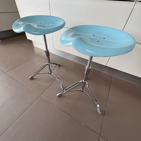 &Tradition Højdejusterbar taburet med hvidt sæde og metalstel