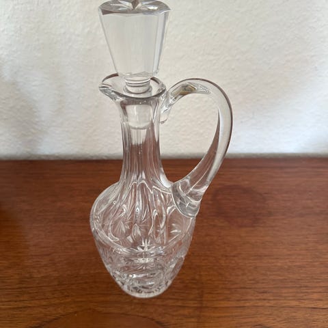 Elegant slebet glas karaffel med prop, velegnet til vin, spiritus eller som dekorativ beholder. Karaffelen har et klassisk udtryk med fine slibninger og en form, der leder tankerne hen på Tuscan-inspireret indretning med varme, elegance og tidløs charme.