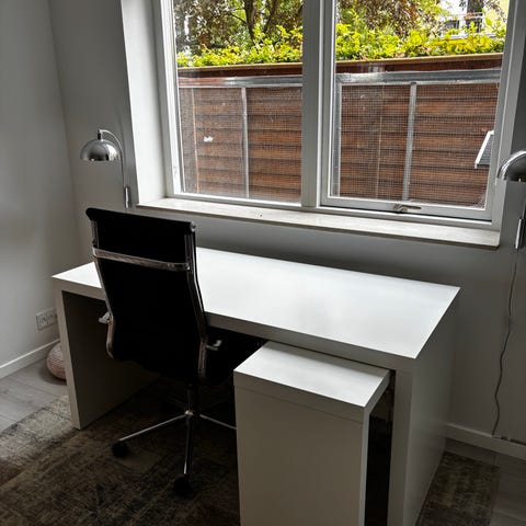 IKEA Malm Skrivebord 151 x 65 cm hvidt med udtræk sidebord