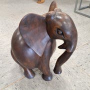 Elefant bordlampe , stødtænder af elfenben, over 80 år gl.mahongni eller teaktræ