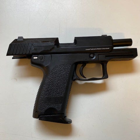 Hk usp compact 9mm Umerax Airsoft hardball pistol med custom recoil fjeder og to magasiner (er tætte og fejler intet)