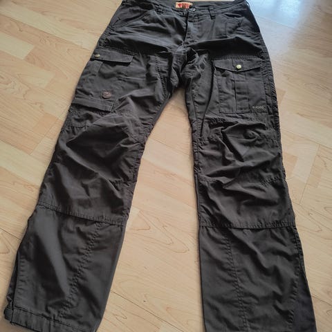 Fjällräven bukser i beige farve, størrelse 50 til mænd. Fremstillet i bomuld, designet til komfort og holdbarhed.