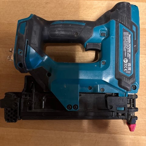Sælger min Makita stiftpistol uden batteri, og der medfølger en næsten fyldt kasse med rustfri stifter. Brugt til renovering af en sauna, og den er brugt i to weekender - som ny :-)