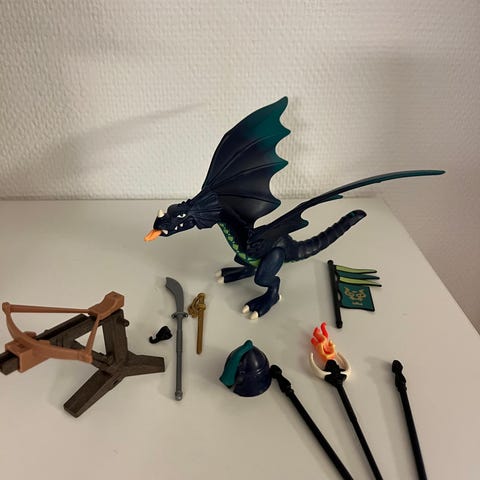 Fint sæt med drage, dinosaur og en masse ekstra. Sætter er ikke komplet, men der er en masse ekstra med. Der er navn på drage og dino
