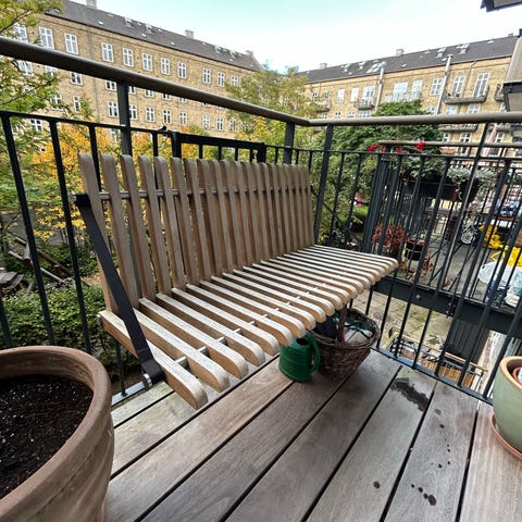 Jeg har også fine sand-farvede madras-hynder som følger med. Egnet til udendørs brug i haven eller på terrassen, eller i sommerhuset.