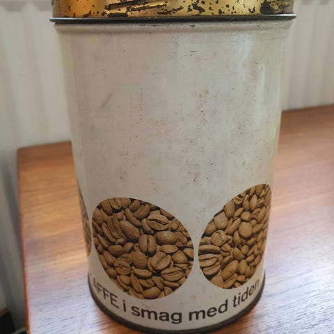 BAGEPULVER DÅSE i pap med metalbund og hvidt plast låg - pris kr. 30,-.