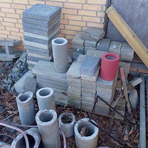 Ca 100-150 sten i gule nuancer samt en del skårne til kanter. Hent bare