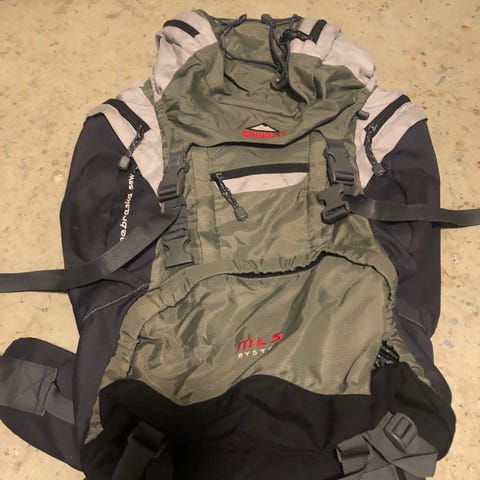 70 liter Haglöfs Vandrerygsæk med regnslag, 2 lommer på siderne, stor lomme under og på toppen i rigtigt fint stand.