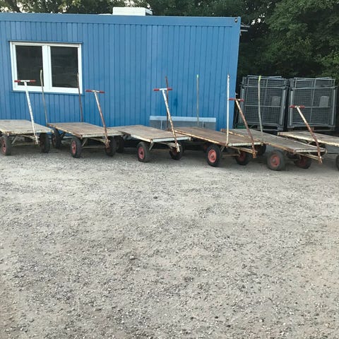 FIN ravendo trækvogn, hvor alt virker som det skal. Har gode bremser, så den også kan stå stabilt, hvor det skråner. Nyprisen var 11 - 12.000,- kr. Kan laste op til 1200 kg. Det er den gule, der er til salg. Henv. her eller på 61413700