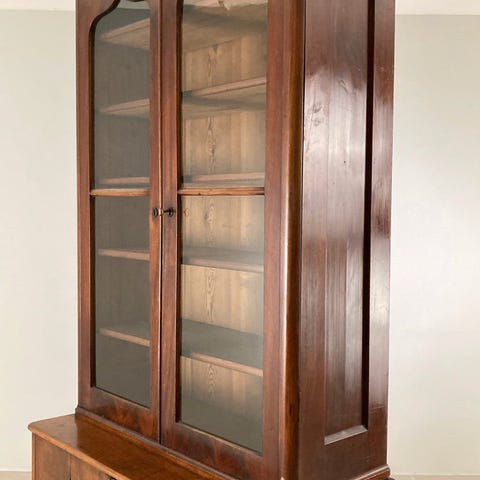 Vรฆgmonteret vitrineskab i mahogni