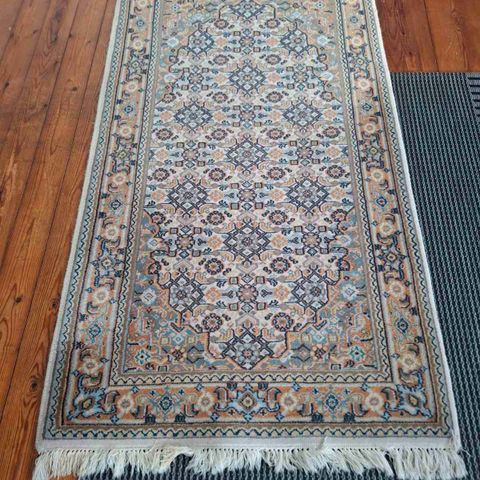 175 x125 cm ægte gulvtæppe i flotte farver i rigtigt fint stand fra røgfri hjem.