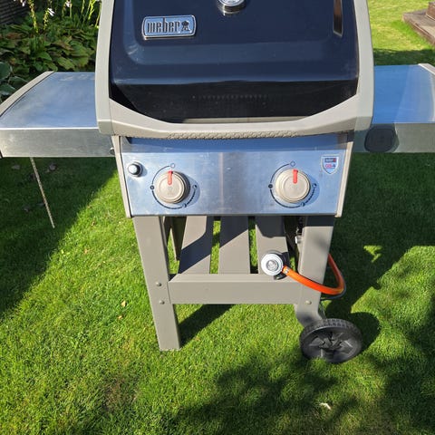 Weber Spirit II gasgrill med 3 brændere. Grillen har et låg med temperaturmåler, to sideborde. Der medfølger en ekstra grillrist til eks. brød. Fejler intet. Sælges pga flytning. Gasflaske 10 kg letvægt kan medfølge for ekstra 400 kr. (Nypris ca. kr. 900)