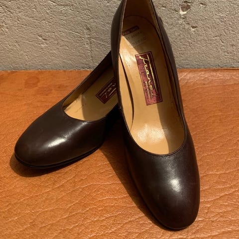 Sorte pumps med ankelrem, og flade "snuder". Mærket er forsvundet, men det er srr 40. Brugt begrænset.