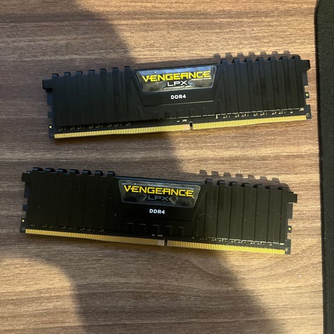 Corsair Vengeance DDR 4 RAM med en samlet kapacitet på 4x8GB og en hastighed på 3200MHz. RAM-modulerne er designet til at forbedre computerens ydeevne og er kompatible med systemer, der understøtter DDR4 hukommelse.