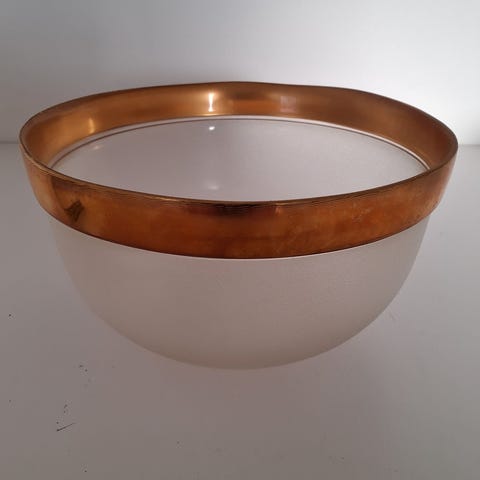 Skålen har en glat, mat overflade med en blank, gylden kant i toppen.,Afhentes i:,Røde Kors Glostrup (161),Bemærk at mail, chat og beskeder ikke besvares, og varen skal købes på knappen "Gå til varen"