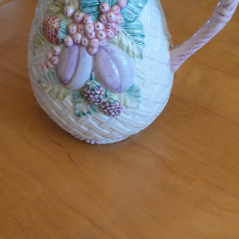 Kanden er lavet af klart krystal med udsmykkede mønstre. Den har en rund form og et komfortabelt håndtag.,Afhentes i:,Røde Kors Glostrup (161),Bemærk at mail, chat og beskeder ikke besvares, og varen skal købes på knappen "Gå til varen"