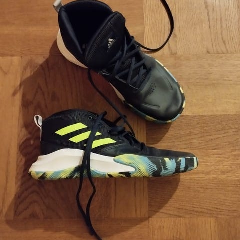Adidas basketballsko i flot design. Komfortable og lette med god støtte – perfekte til både basketball og hverdagsbrug.
