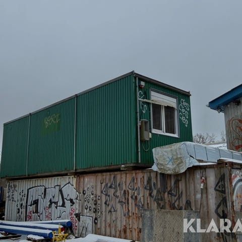 Anvendt som kontor i den ene ende og spise-/opholdsrum i den anden ende.