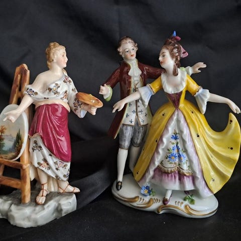 Antikke småstatuer af ukendt oprindelse, men markeret med et symbol, har jeg fået oplyst, at de sandsynligvis er af tysk oprindelse, men jeg har ikke fået verificerede oplysninger om dette.