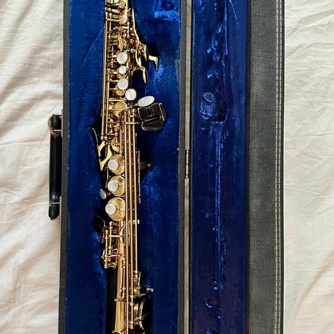 Selmer sopranosaxofon model 22, fremstillet i 1925 i Frankrig, messingtøj, ikke-funktionel og skal restaureres, med original kuffert. Klik på den blå "gå til varen" knap, for at købe eller byde på denne vare. Den samlede pris vil blive vist inden du afgiver dit bud.