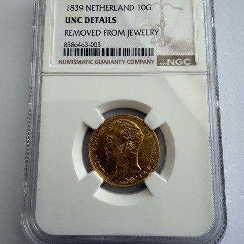 Nederlandsk gyldent 10 gulden mønt, 1897 b Wilhelmina, guld 900/1000, vægt 6,74 g, tilstand ikke-certificeret, kvalitet Very Fine+. Klik på den blå "gå til varen" knap, for at købe eller byde på denne vare. Den samlede pris vil blive vist inden du afgiver dit bud.