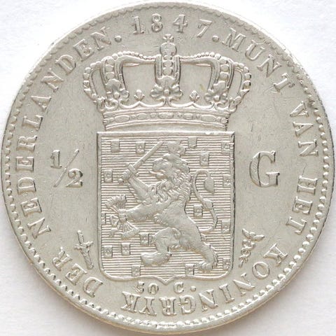 Strålende kvalitet 1/2 gulden Willem III, normalt er kvaliteten af disse halve guldens betydeligt dårligere.