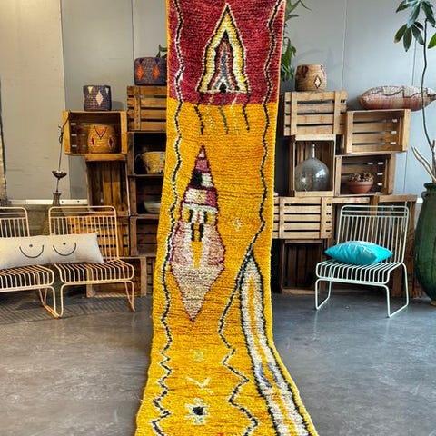 Vintage marokkansk berber løberug, håndvævet i Høje Atlas, Marokko, uld på uld fra det 21. århundrede, 230 × 75 cm, i meget god stand og professionelt renset. Klik på den blå "gå til varen" knap, for at købe eller byde på denne vare. Den samlede pris vil blive vist inden du afgiver dit bud.