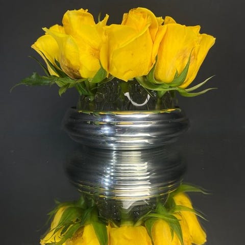 Pique-fleuren har en smukt støbt klar glasindsats med flere blomsteråbninger, sikkert fastgjort i en tung sølvbelagt base. Dens kompakte proportioner gør den ideel som bordmidtpunkt, bordpynt eller en dekorativ detalje.