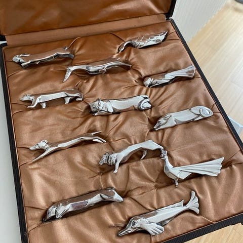Et stykke, der ikke blot er et redskab, men en udstillingsskulptur, der kan pryde de mest raffinerede borde eller antikke sølvsamlinger. Sættet indkapsler den luksuriøse smag fra det franske 1900-talsbord. Collection Gallia, lanceret af Christofle i begyndelsen af århundredet, er kendt blandt samlere for brugen af ædle legeringer og for