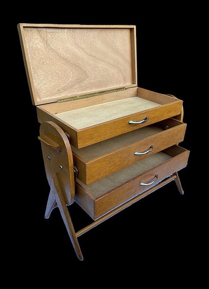 Det er et vintagestykke, der bruges til at holde tallerkener eller mad varm på en