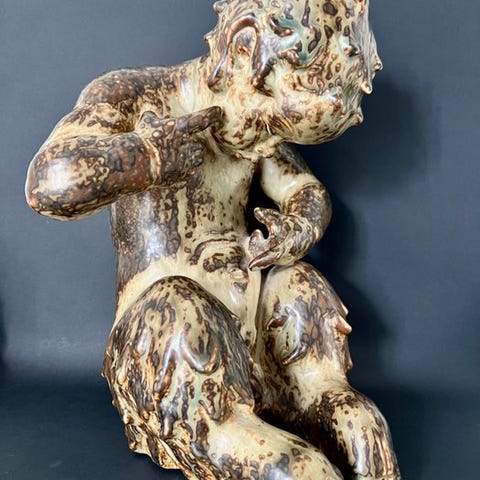 Combattimento delle anatre # 20281 er en multicolour brun design keramik i gres fra Danmark, 1938, 35 × 25 × 19 cm, 4,9 kg, håndsigneret, tilskrevet Knud Kyhn for Royal Copenhagen og i fremragende stand. Klik på den blå "gå til varen" knap, for at købe eller byde på denne vare. Den samlede pris vil blive vist inden du afgiver dit bud.