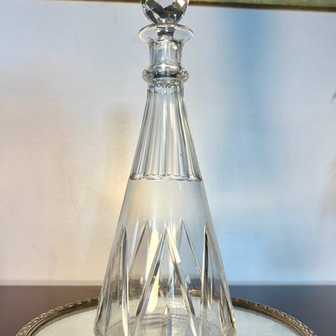 Harcourt-karaffelen blev skabt af Baccarat i 1841 og er blevet en af de mest ikoniske kollektioner fra den franske krystalproducent. Dens karakteristiske design med sekskantede facetter og en elegant silhuet repræsenterer toppen af fransk håndværk inden for slebet krystal.