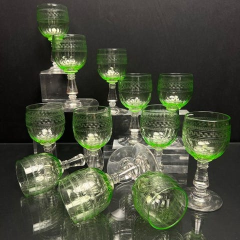 Kieliszki af typen Romer, et smukt sæt på otte stykker, har rige facets og er håndlavet krystal. S bruges til at servere vin. Vintage fra 1950'erne til 1970'erne. Alle er i meget god stand, uden afskrabninger, revner. Fremragende gennemsigtighed og håndværk. Jeg anbefaler dem, de er smukke. Forsendelsen vil være forsikret. Jeg giver målene for sættet: 21 x 7,5 cm.