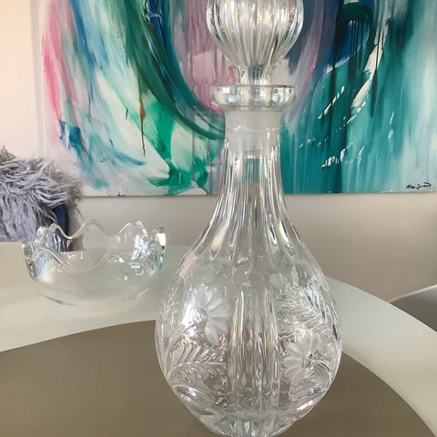Karaffen er i fremragende vintage-stand. Kroppen er ren, lysende og særdeles glansfuld, der viser krystalens kvalitet. Der er nogle lette ridser på overfladen og en lille mikroskade ved basen, i overensstemmelse med alder og omhyggelig brug, og som ikke forringer den samlede æstetik.