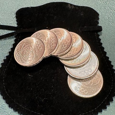 Et sæt på 45 italienske sølvmønter på 500 lire som commemorative i Proof og FDC, ikke-cirkulerede, ca. 5 kg. Klik på den blå "gå til varen" knap, for at købe eller byde på denne vare. Den samlede pris vil blive vist inden du afgiver dit bud.