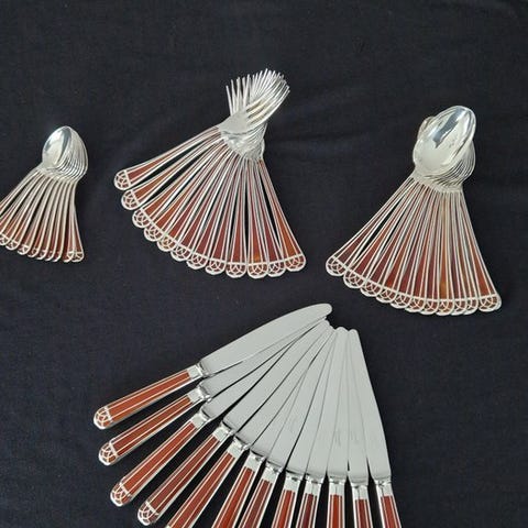 Christofle bestiksæt model Albi til 12 personer, Frankrig, 1970’erne, sølvbelagt metal, således sammensat: