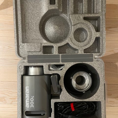Nanlite Forza 300B II LED videolys med Bi-color leveres med en opbevaringstaske. Sættet inkluderer lysenhed, strømforsyning, kontrolenhed og kabler, alle organiseret i en specialdesignet taske til transport og opbevaring.