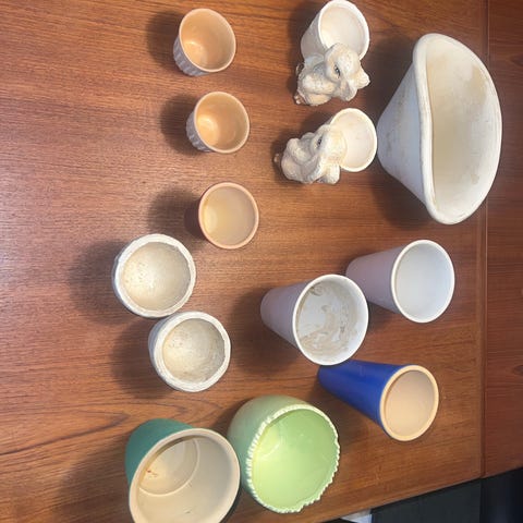 Ubrugte kartoffelpotter. Mange sæt haves. Pris er på stk.