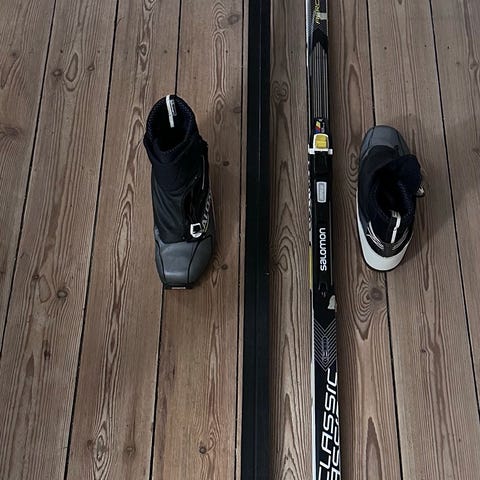 Salomon Elite 5X Grip langrendski med bindinger. Skiene er designet til langrend og har grip-teknologi, der sikrer godt fodfæste under brug. Farven er hvid med sorte og gule detaljer. Skiene er velegnede til brug på sne og til langrendsaktiviteter.