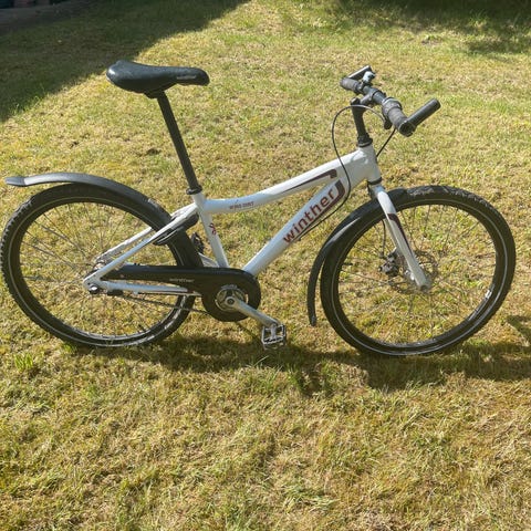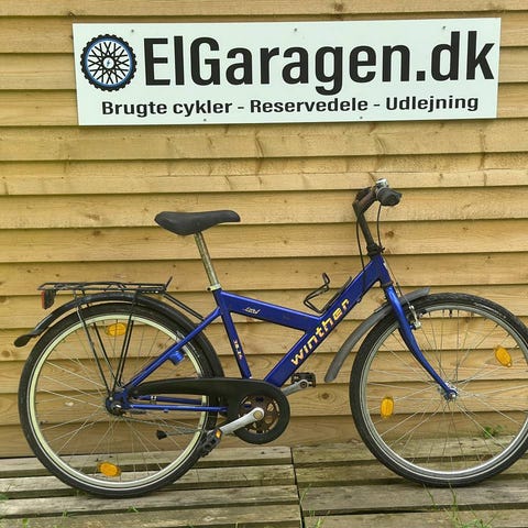 Rigtig sej Winther børnecykel med 24" hjul, sort farve. Cyklen er designet til børn og har en ramme og sadel i sort. Kan bruges af både piger og drenge!