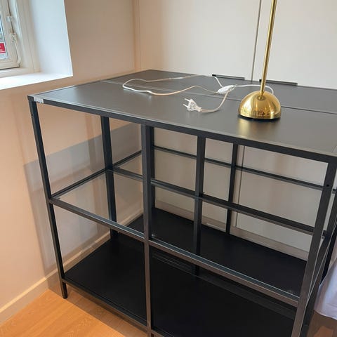 Lækker åben reol i metal/stål. Med plads til meget indhold.