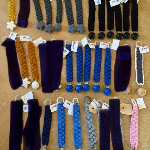 Elodie Details suttesnor i sæt med 3 stk. i assorterede farver og mønstre. Suttesnoren har clips til fastgørelse af sutten og er designet til at holde sutten tæt på barnet for at forhindre tab.