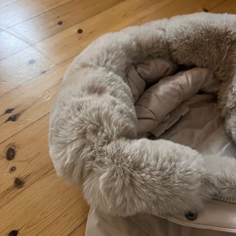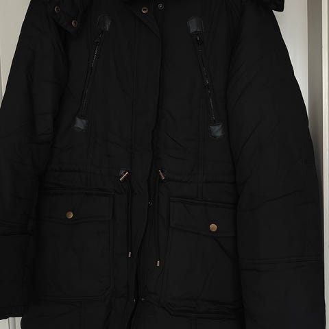 Lækker vinterjakke i mørk blå med aftagelig pelskrave. Som ny. Købt for lille.