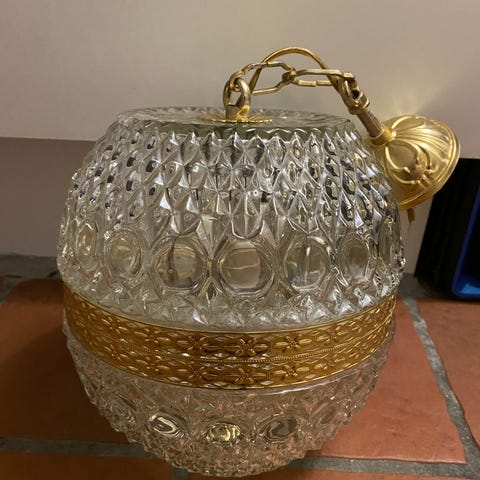 Ophæng: Originalt messing-topstykke med tilhørende messingkæde og baldakin, der kan nemt skiftes ledning.