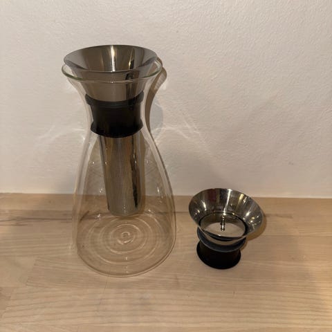 Eva Solo kaffedåse med plads til filtre. Ske medfølger.