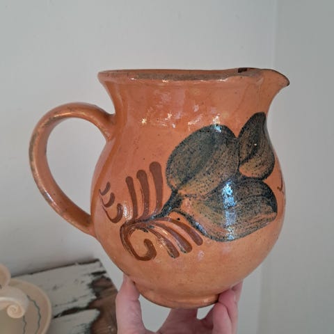 Se lige en skøn lille keramik kande. Ret rustikt udtryk, og rigtig flot løbeglasur - flottere i virkeligheden, end hvad jeg kunne fange på billedet. Dansk keramik. Signatur i bunden. Flot uden skår 🫶🏻