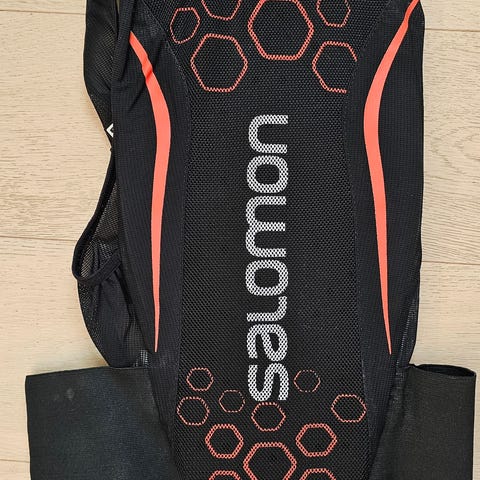 Salomon Junior rygskjold i sort farve. Designet til at beskytte ryggen under aktiviteter som cykling og skiløb. Materialet er let og åndbart for komfort ved brug.