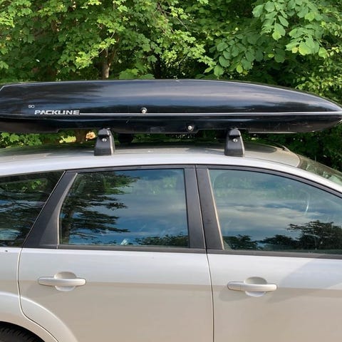 Stor, sort tagboks. God plads til meget bagage. Brugt til mange ski, både alpin og langrend.