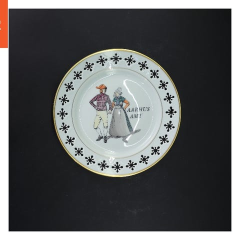 Dekorativ tallerken med danske folkedansere fra Bing Og Grøndal (str. Ø 22 cm)